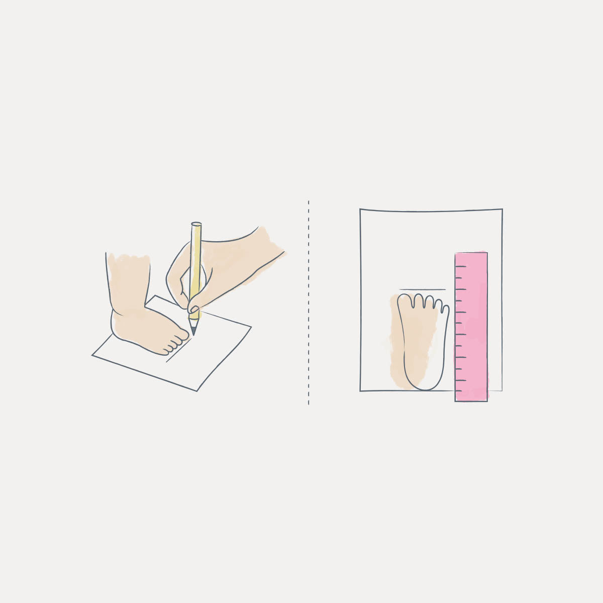 Auf unseren Produktseiten haben wir es Ihnen leicht gemacht, die richtige Schuhgröße für Ihr Kind zu finden. Wir haben einen praktischen Leitfaden hinzugefügt, der Sie Schritt für Schritt dabei unterstützt, die optimale Größe zu finden. Sie müssen lediglich auf „Größe finden“ klicken und die Maße des Fußes Ihres Kindes eingeben. Unser intelligenter Ratgeber empfiehlt Ihnen dann eine Größe, die zu Ihrem Kind passt. Bitte beachten Sie, dass die empfohlene Größe eine Wachstumszugabe beinhaltet.
