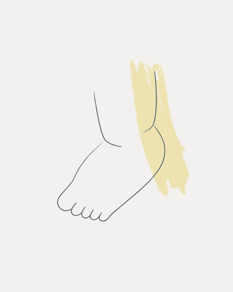 , aber der Fuß und die Ferse sind noch rund und pummelig.