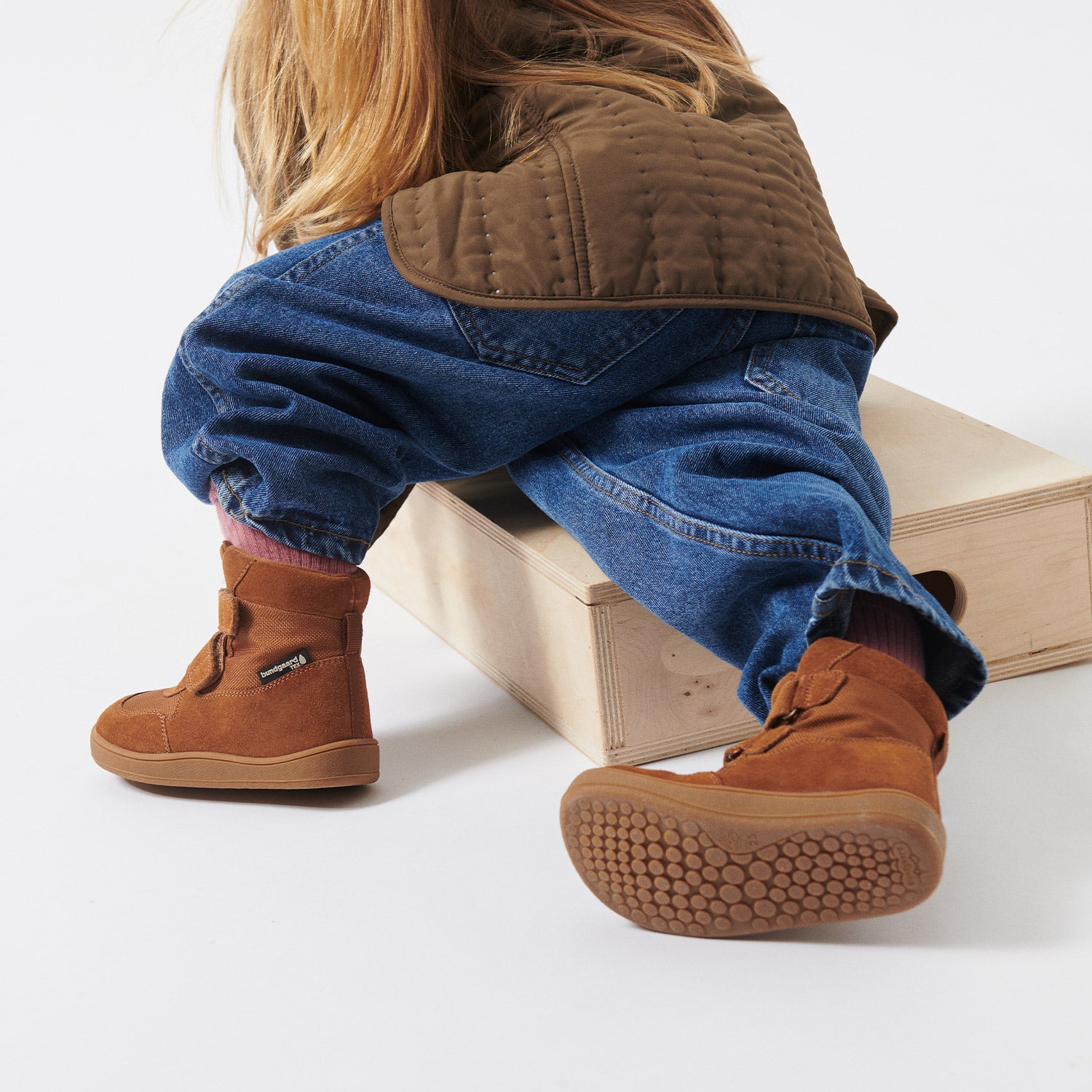 Bobbie ist ein klassischer Winterstiefel mit sportlichem Look, der Textil mit weichen, gewellten Details aus Wildleder kombiniert. Er ist auf Kinder mit breiten Füßen zugeschnitten und eignet sich ideal für Kinder, die bereits laufen können und ihr Gleichgewicht gefunden haben.