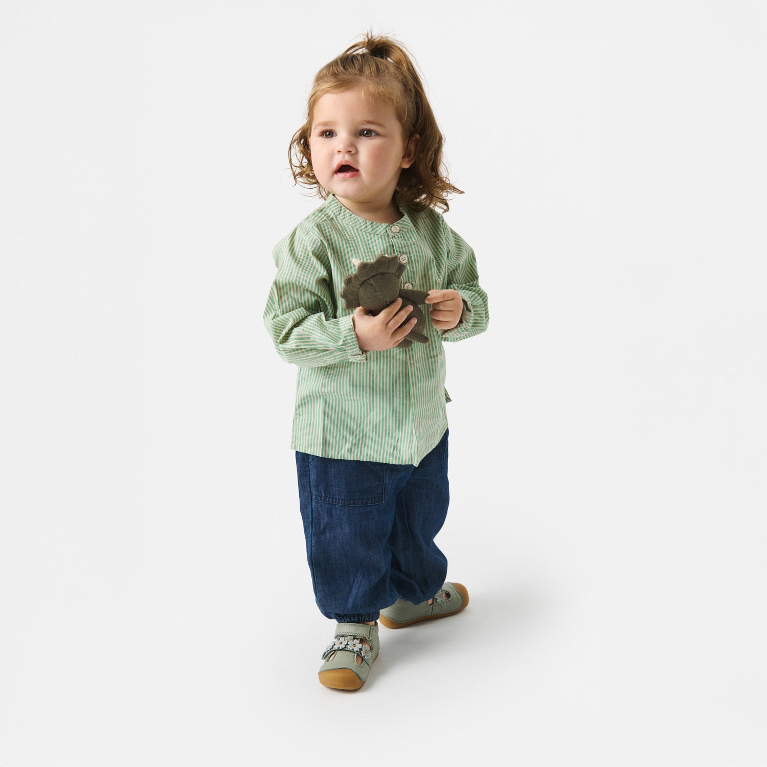 Bei der Entwicklung der Sandale wurde besonderer Wert auf Weichheit, Passform und Flexibilität gelegt, was für kleine Füße, die die Sandale oft über einen längeren Zeitraum tragen werden, entscheidend ist. Die flexible, weiche Sohle gibt dem Kind natürliche Bewegungsfreiheit, während die strapazierfähige Gummispitze die Füße beim Krabbeln, Aufstehen und Üben des Stehens und Gehens schützt. Die Gummispitze sorgt für zusätzliche Robustheit und schützt die kleinen Zehen beim Spielen und Erforschen.