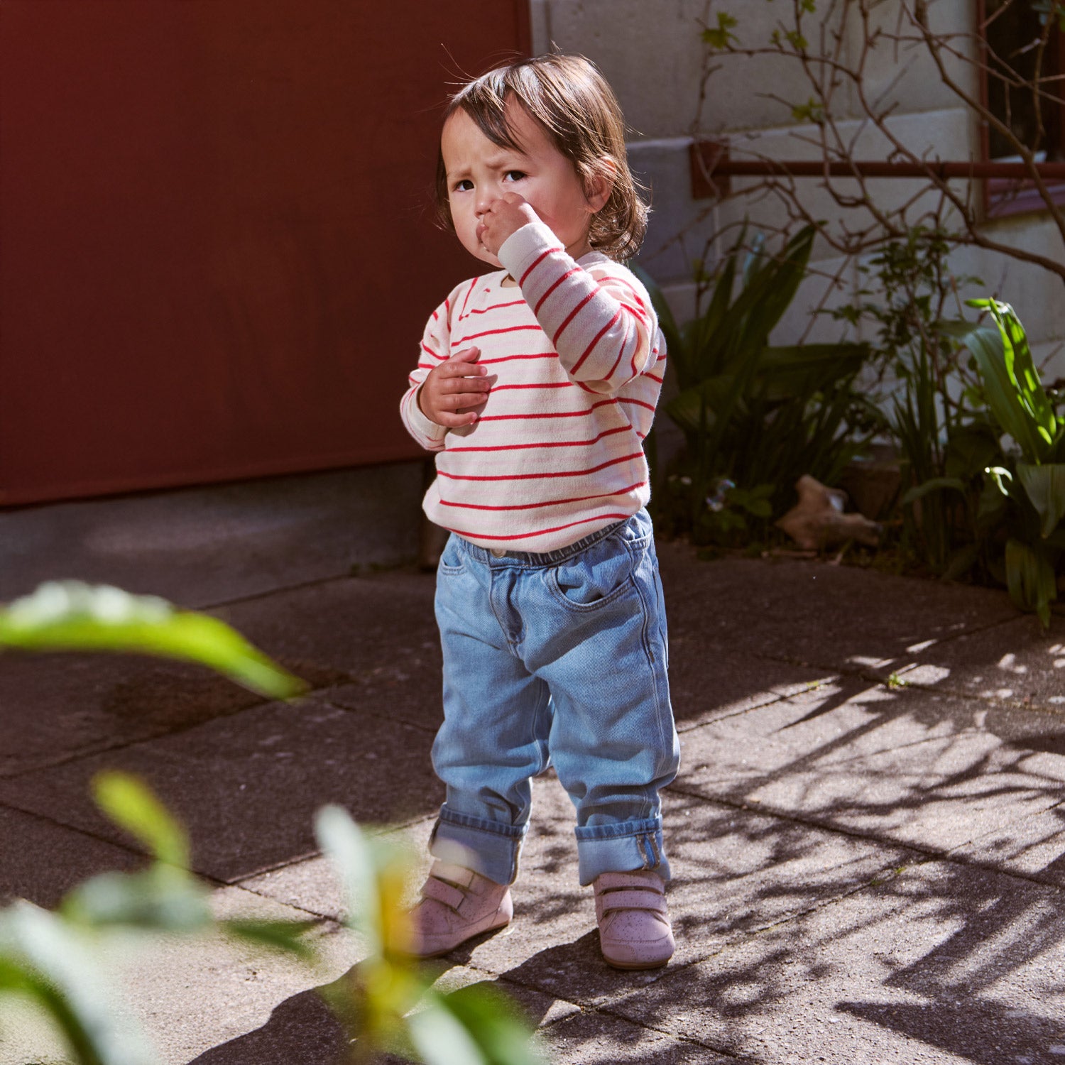 Der Prewalker ist mit einem Klettverschluss und einer Verkürzungsmöglichkeit für eine verstellbare Passform ausgestattet, wodurch sich der Schuh perfekt an den Fuß des Kindes anpasst und optimalen Komfort und Halt bietet.